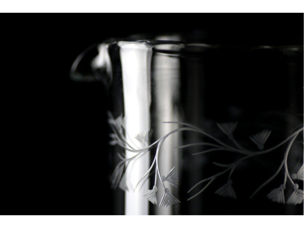 Bohemia Crystal džbán Pine je elegantní kus ručně rytého čirého nápojového skla s dekorem připomínajícím větvičky jehličnanů. Nádherný kousek do každé domácnosti. Bezolovnatý křišťál. Vhodné do myčky.