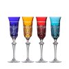 Bohemia Crystal Set aus 4 handgeschliffenen Champagnergläsern in einer Farbkombination – Azurblau, Blau, Bernstein, Rubin. Volumen 180 ml. Hergestellt aus 24 % PbO-Bleikristall. Verpackt in einer dunkelblauen Satin-Geschenkbox. Nicht spülmaschinenfest.