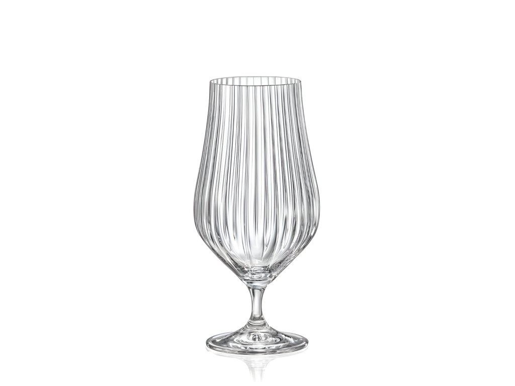 Beer glasses Tulipa Optic 540 ml by Bohemia Crystal combine visual elegance and functionality. Their shape is inspired by the silhouette of a tulip blossom, with gently curved sides that taper slightly toward the rim. This design emphasizes the foam, aroma, and color of the beer, appreciated not only by Czech crystal collectors but also by beer connoisseurs.