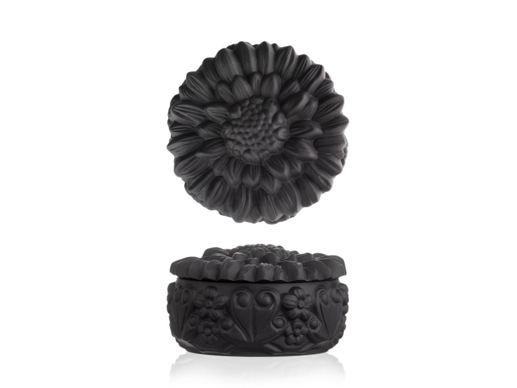 Bohemia Crystal Handmade jar with lid Sunflower. Color Black. Made of lead-free crystal. Packed in dark blue gift box with satin.