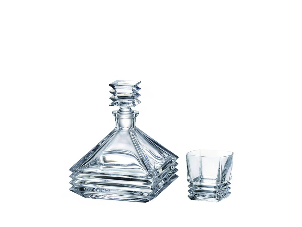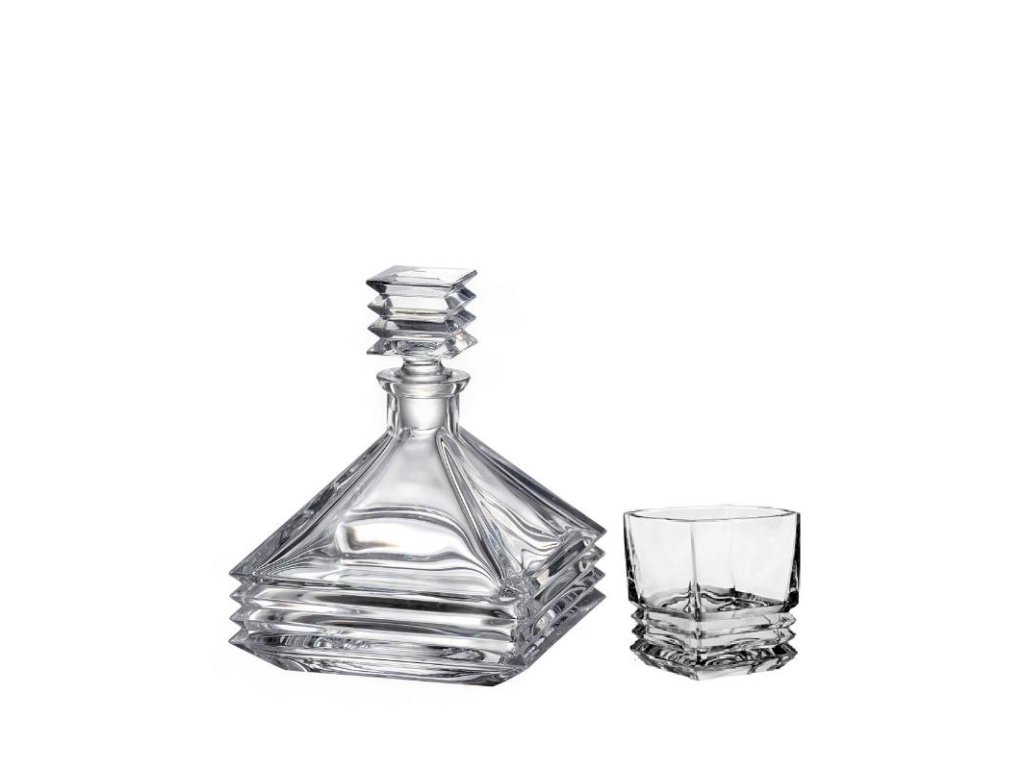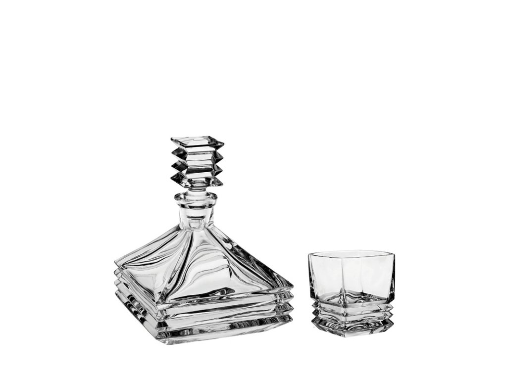 Bohemia Crystal whiskey set from the Maria collection is modern, striking and elegant. Bold ribbing gives this set real juice. Fill the bottle with your favorite whiskey, rum, liqueur or cognac and enjoy them in moments of well-being from the perfect shots. Thanks to the close-fitting stopper, all the scent will wait just for you. Suitable as a gift for all lovers of excellent whiskey and quality glass. Made of lead crystal with unrivaled luster and durability. Dishwasher safe. A luxury gift made in the Czech Republic. The set can be combined with other products from the Maria collection.