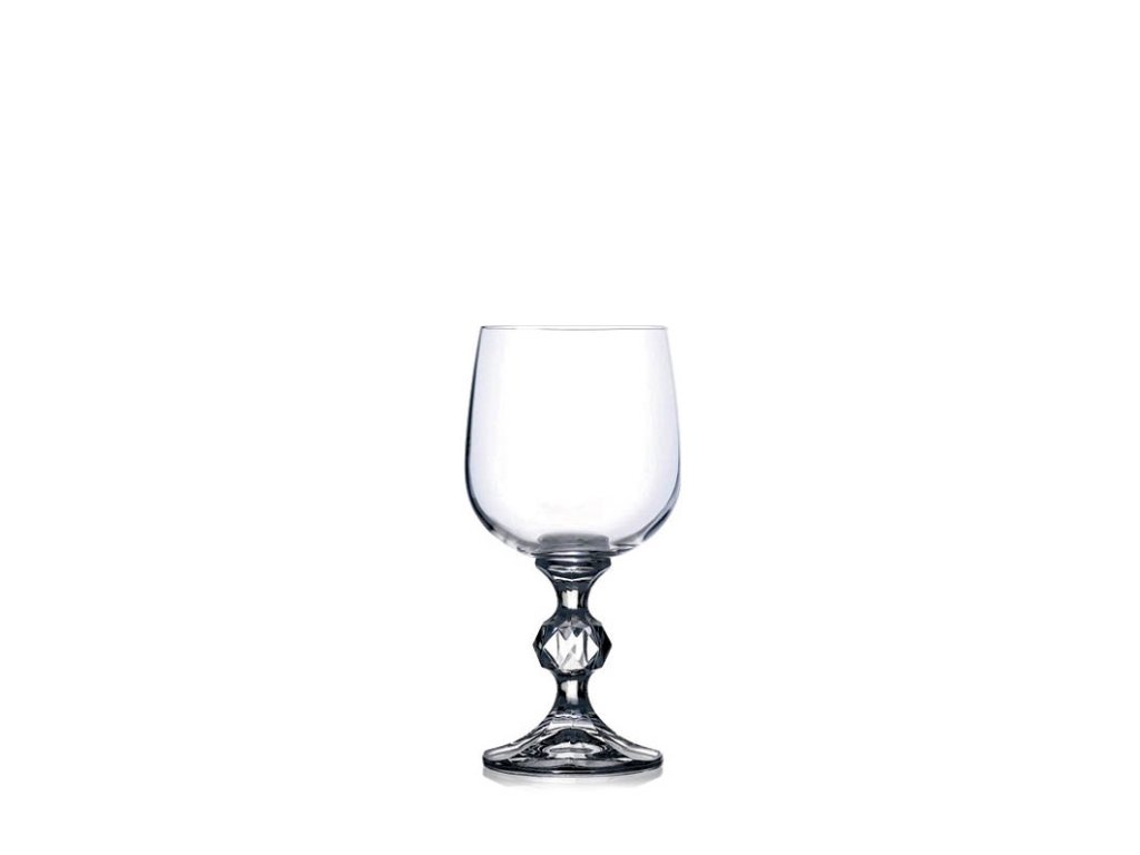 Claudia borospohár 230ml. Üveg magassága 151mm, átmérője 75mm, 6 darabos készlet. ólommentes kristályból készült, mosogatógépben mosható.