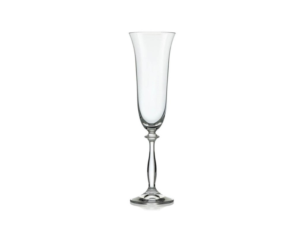 Kieliszek do szampana Angela, pojemność kieliszka 190ml, zestaw 6 sztuk. Wykonane z kryształu bezołowiowego, można myć w zmywarce. Wysokość szkła 248mm, średnica 68mm.