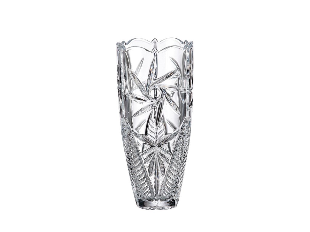Bohemia Crystal váza z kolekcie Nova Pinwheel má tradičný větrníkový dizajn a dekoratívný okraj. Na svoje si prídu milovníci klasiky a poctivej sklárske práce. Pôsobí elegantne a skvele obohatí každý interiér o veľmi luxusný prvok. Má tvar uzavretého kvetu. S výškou 300 mm sa hodí na stredné aj väčšie kytice. Krásna je aj prázdna, stačí ju postaviť tam, kam svieti slnko a môžete si užiť podívanou na hru krištáľu a svetla. Vyrobené z pevného bezolovnatého krištáľu. Vhodné do umývačky. Prekrásny kvalitný darček českej výroby. Ďalšie kúsky s kolekcie Nova Pinwheel nájdete tu.